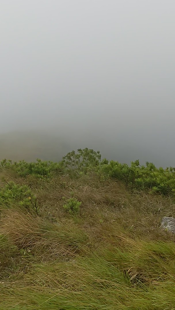 The top was super windy and covered in a cloud. We were standing inside the cloud and it was pelting us with rain and trying to push us along, on our way. We were drenched. It was kind of nice since we had just walked up here and gotten sweaty and hot to get a refreshing shower. The wind, however, did not feel nice. It was strong and we decided to start our way back down, out of the cloud.