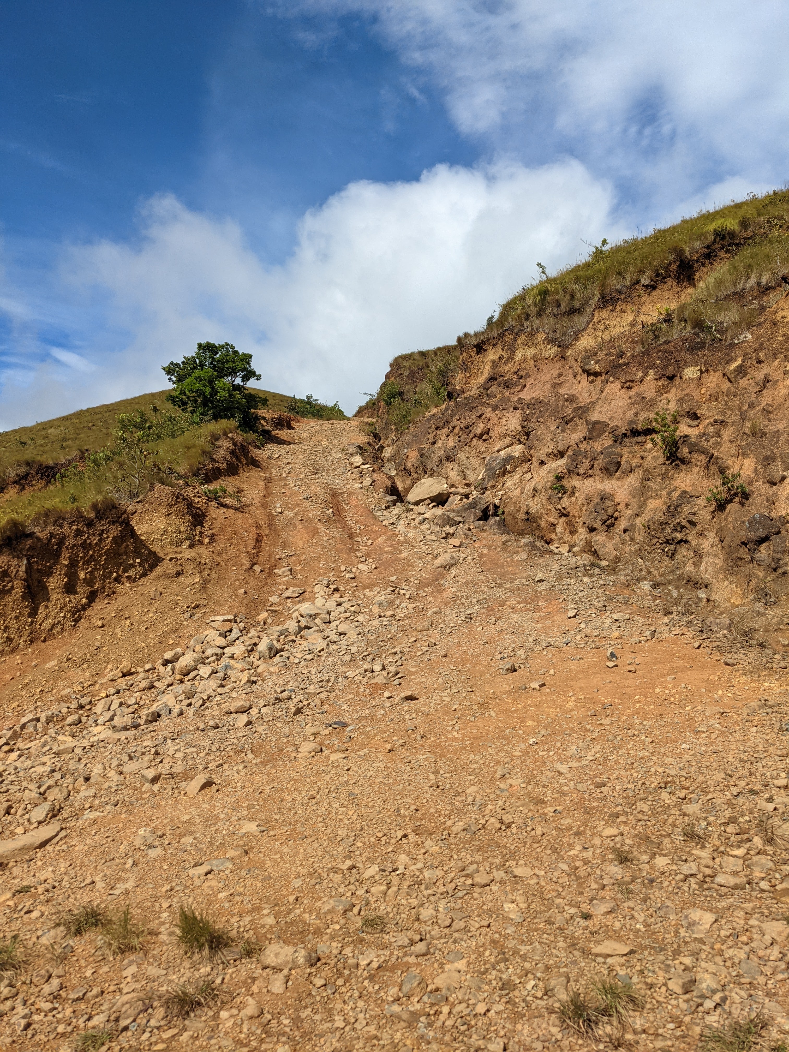 From the trailhead, it is only 2km to the summit. This, by the way, is also uphill. Fortunately, it was not raining at the beginning of our hike up. It is the same mud going up this trail, but since it had not rained here much, it was really solid clay. And rocks. Lots of loose rocks that are trying to break your ankle. I only had to tell Axel to be careful 200 times. About 100 of them were probably unnecessary, but it made me feel better. HAHA!
