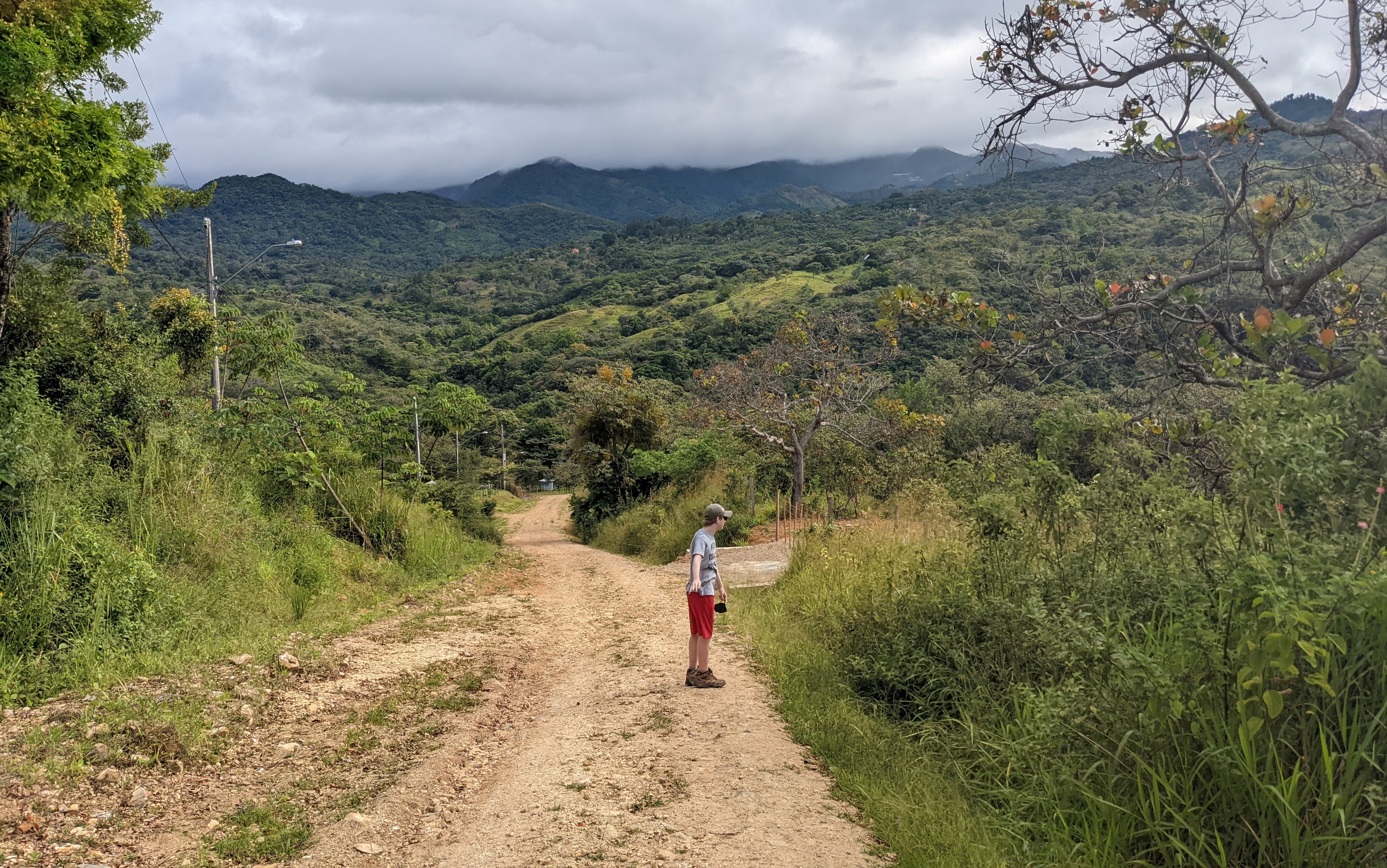 We ate breakfast then started our trek at 9am. We got lucky with some cloud cover that made the walk up the hill a little less difficult. We turned the corner at the cafe and the road flattened out a little, but then went up again. Not as bad as the road to the store, but still up. We passed by people and waved and said good morning. It was a beautiful day for a walk and the clouds kept it a very nice temperature.