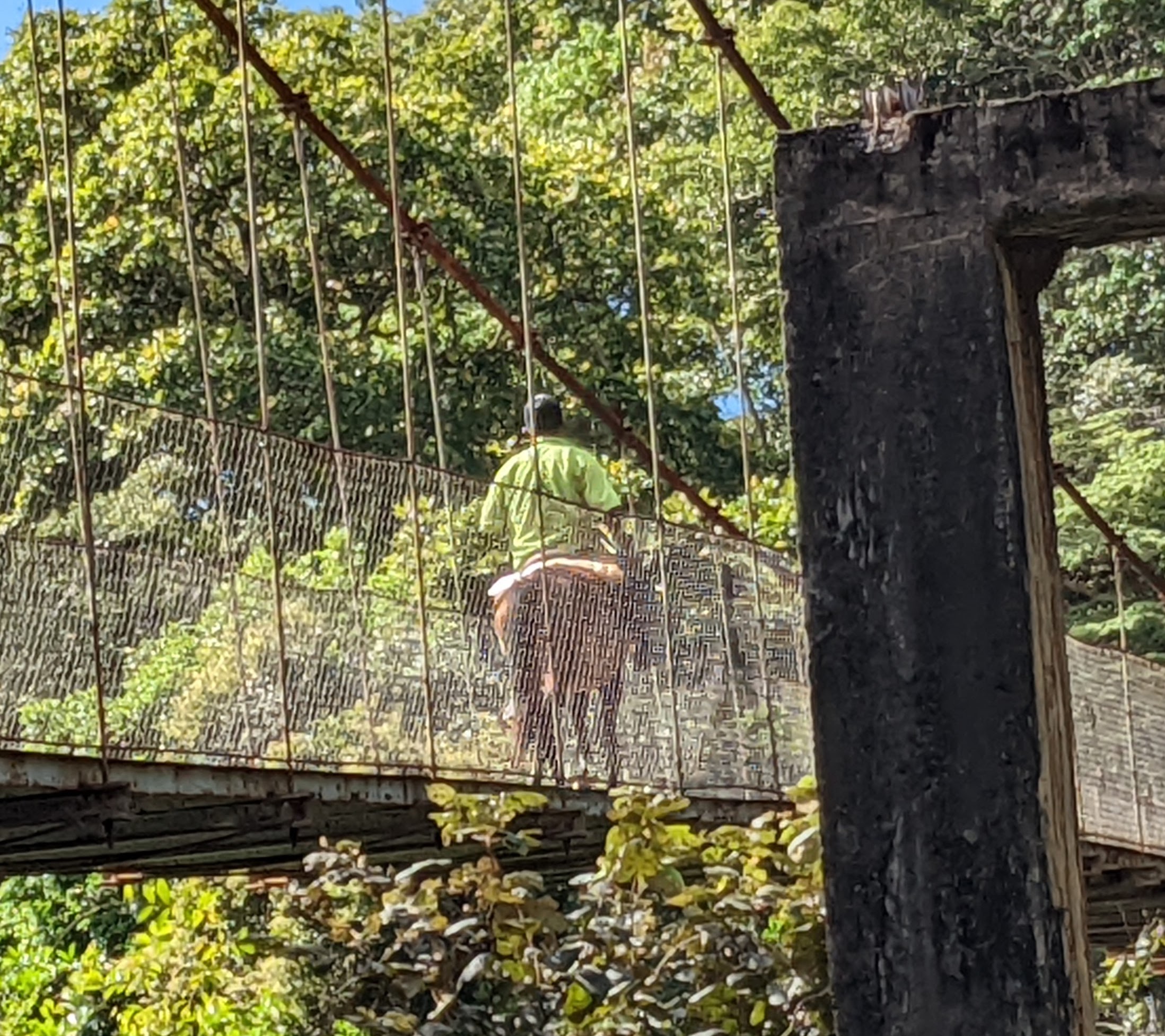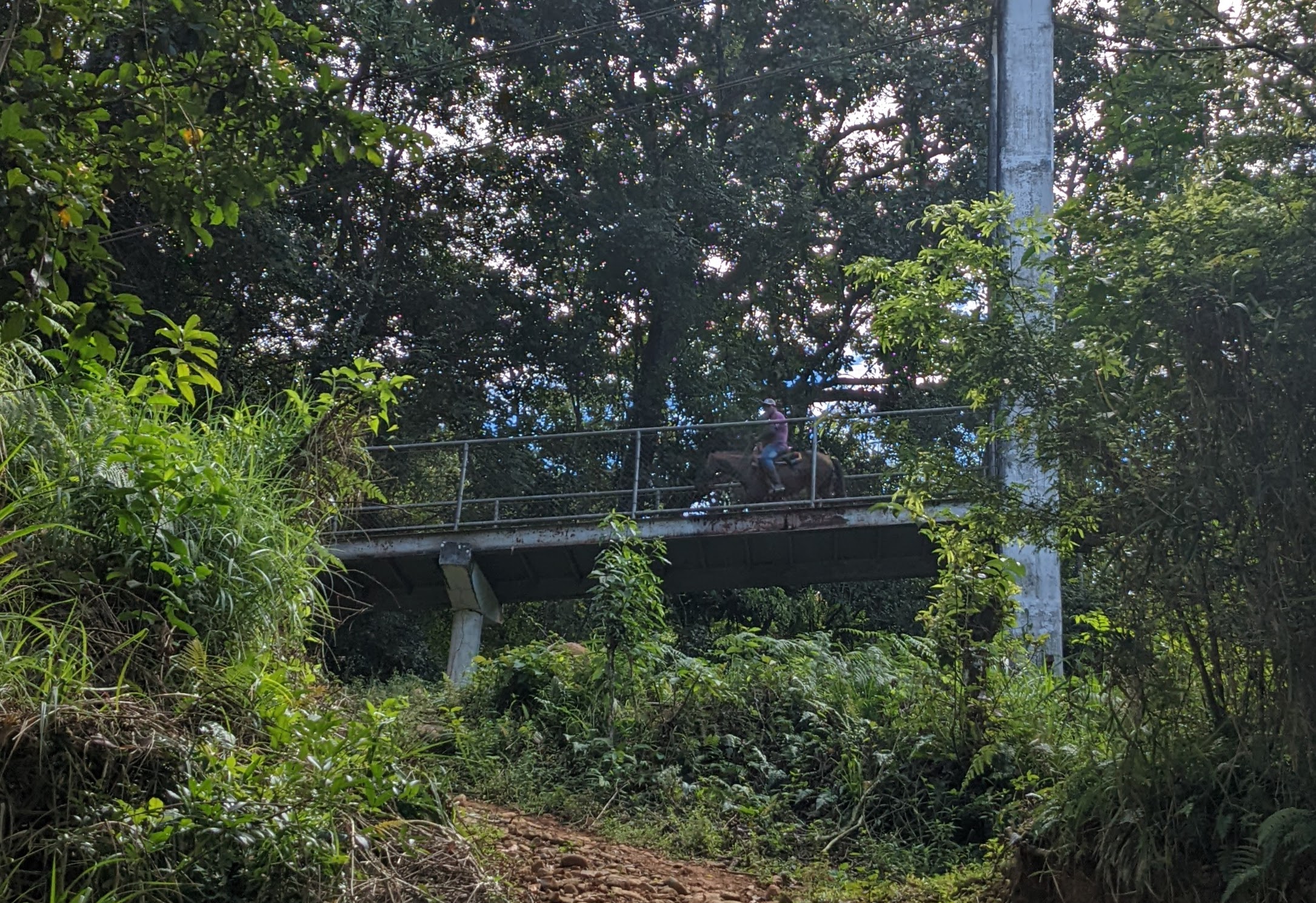 After about 15 minutes, we heard this banging sound. It sounded like a train. There are no trains up here, let alone down where we were. We looked all around to see what was making the noise and finally, we saw a guy riding his horse across the bridge and the horseshoes were making a huge noise when they hit the sheet metal on the bridge. We just sat there and marveled at the horse crossing the footbridge. I am sure the guy wondered why we were staring at him, but it was pretty cool.
