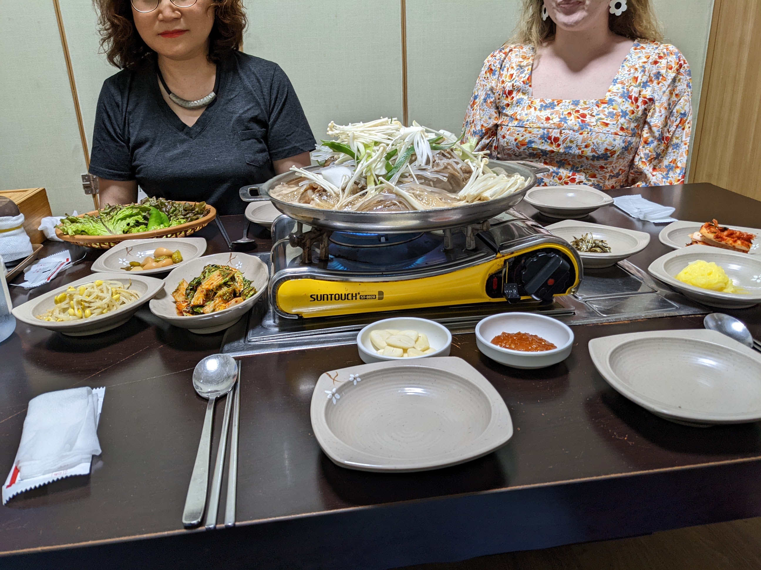 For our last day there, Matilda’s co-teachers took us out for bulgogi dinner. It was delicious. Well, most of it was. I was not fond of the honey-mustard cold noodles and don’t think I will get the cold noodle soup again. It wasn’t bad, just not something I think I would want again. It is, according to the teachers, one of the most popular dishes in South Korea.